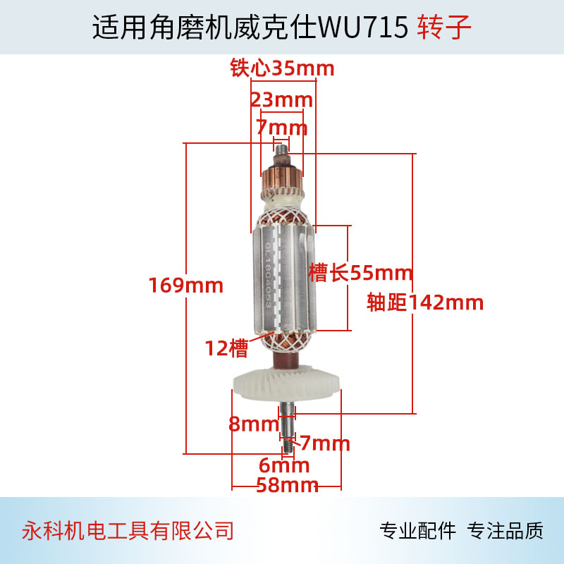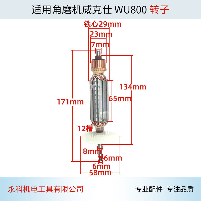 适用威克士WU800S角磨机转子WU715角磨机转子角向磨光机配件