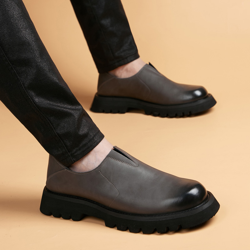 大头皮鞋男商务正装真皮夏季新款英伦风一脚蹬厚底休闲内增高男鞋