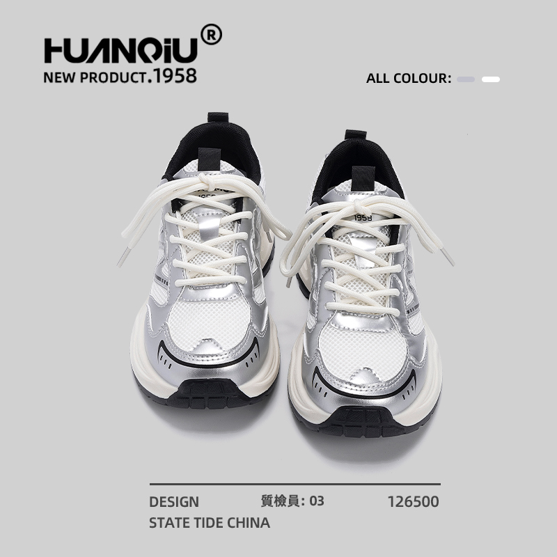 环球厚底银色老爹鞋女款2025新款夏季透气网面休闲鞋增高运动鞋女