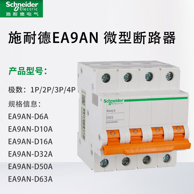 施耐德EA9AN微型断路器1P/2P/3P/4P 6A-63A电闸空气开关D型总匝B