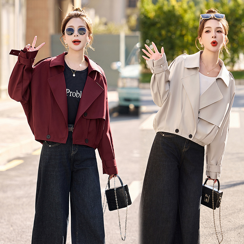 高端韩系翻领短款风衣外套女2025秋季新款小个子气质休闲夹克上衣