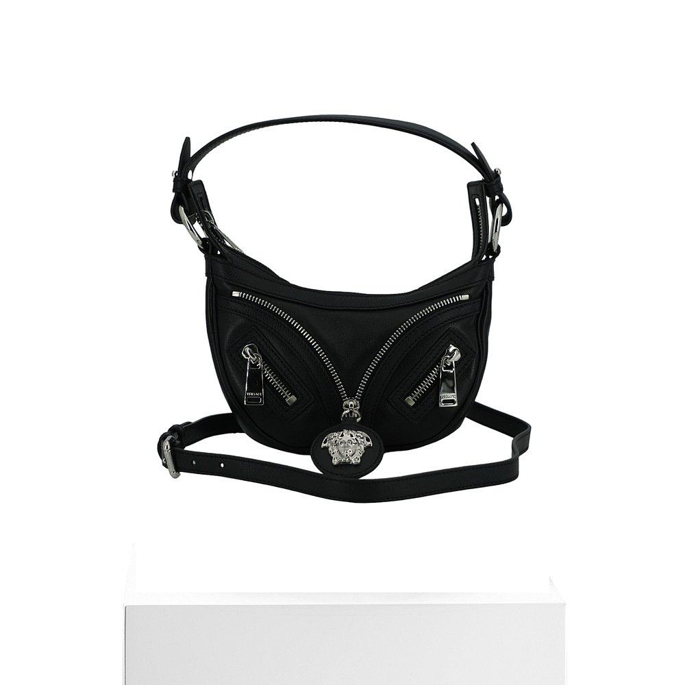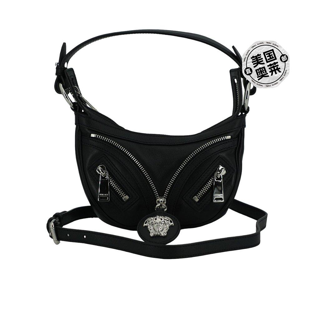 自营 Versace 小牛皮 Hobo 迷你单肩女式包 - 黑色 美国奥莱直发