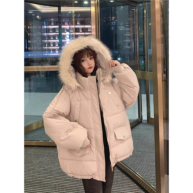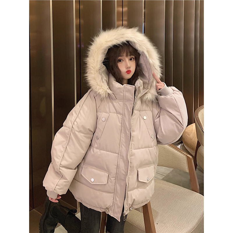 特大码胖mm杏色连帽面包服女秋冬减龄学生棉衣棉服加厚保暖外套潮