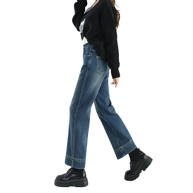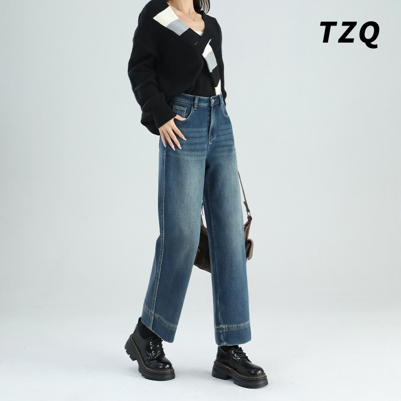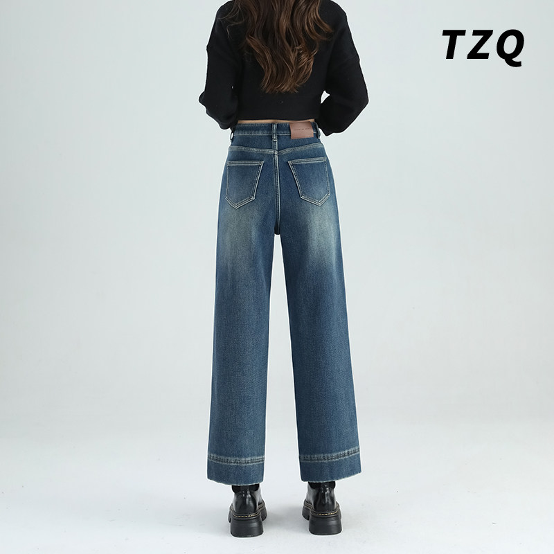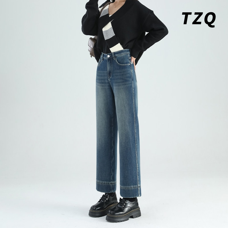 复古高腰窄版阔腿牛仔裤女夏季薄款宽松设计小个子九分直筒烟管裤