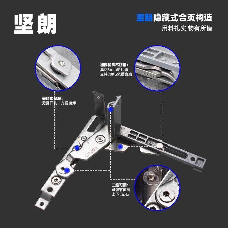 坚朗断桥铝平开窗不锈钢隐形铰炼内开门窗暗合页漏风免打孔配件