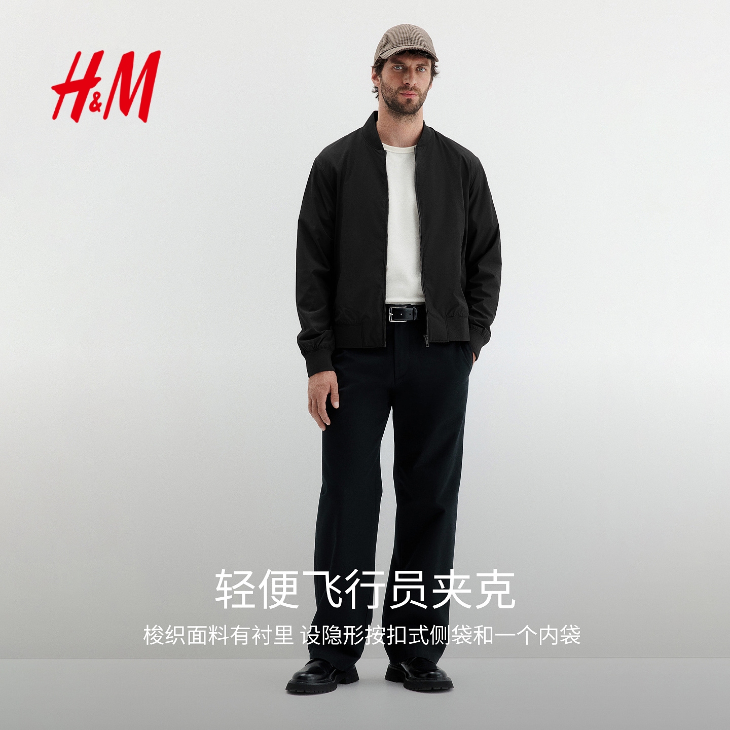 HM男装女装夹克秋季简约立领拉链简约柔软飞行员夹克1225195