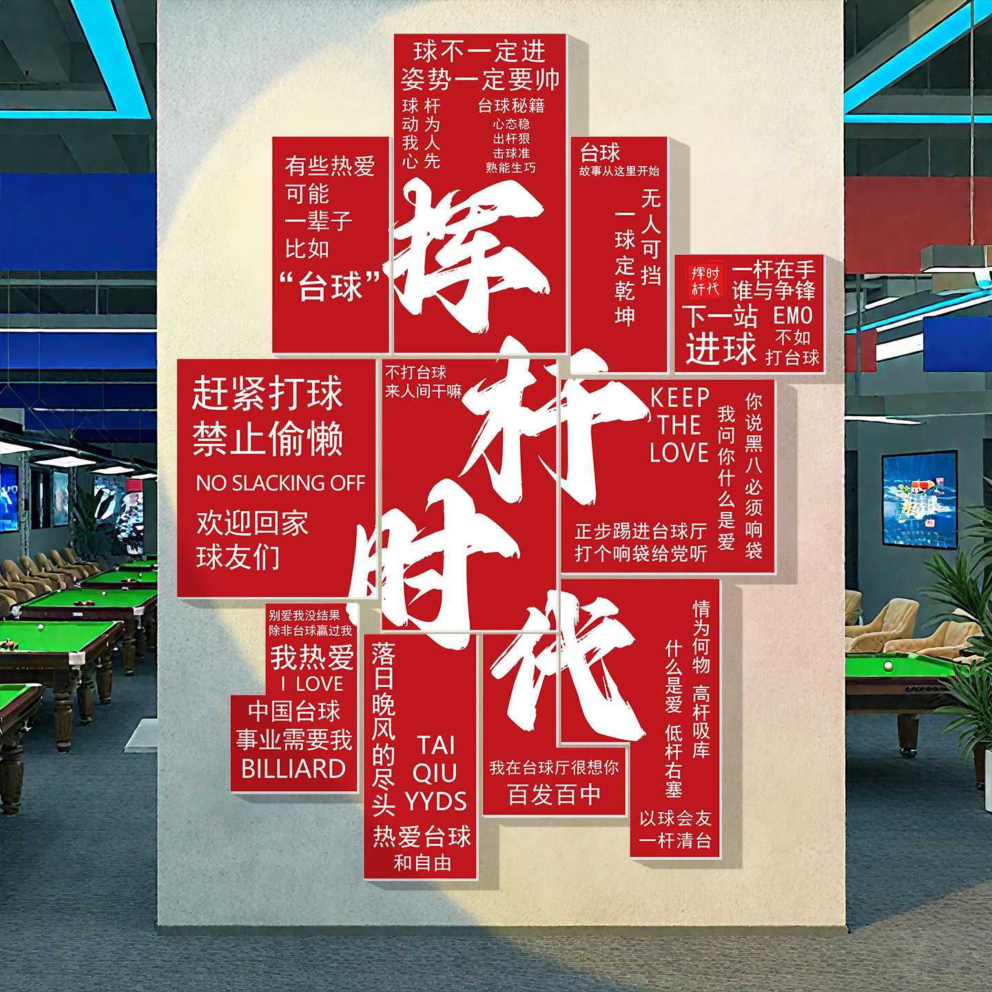 网红台球厅墙面装饰用品大全海报墙贴桌球室装饰画文化形象背景墙
