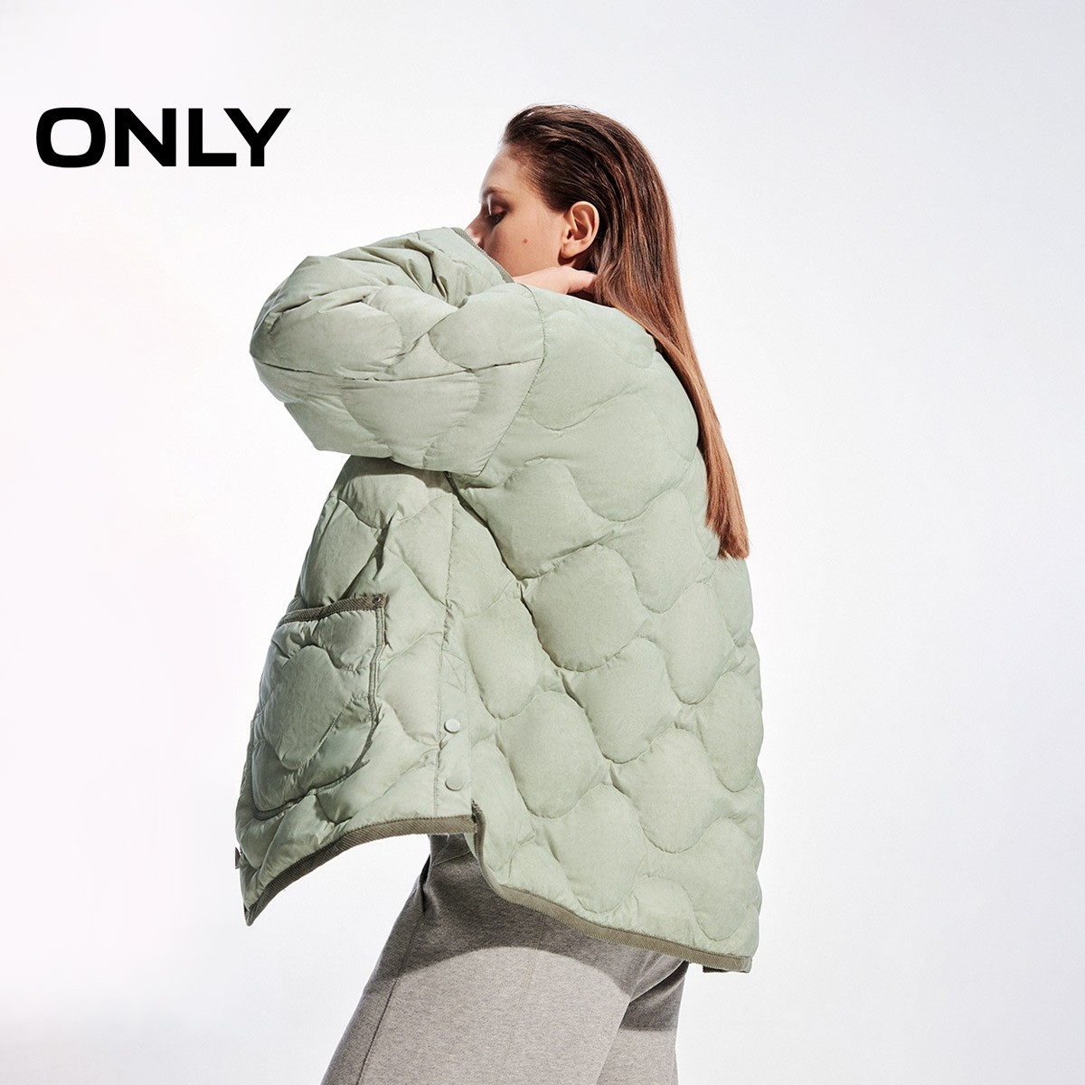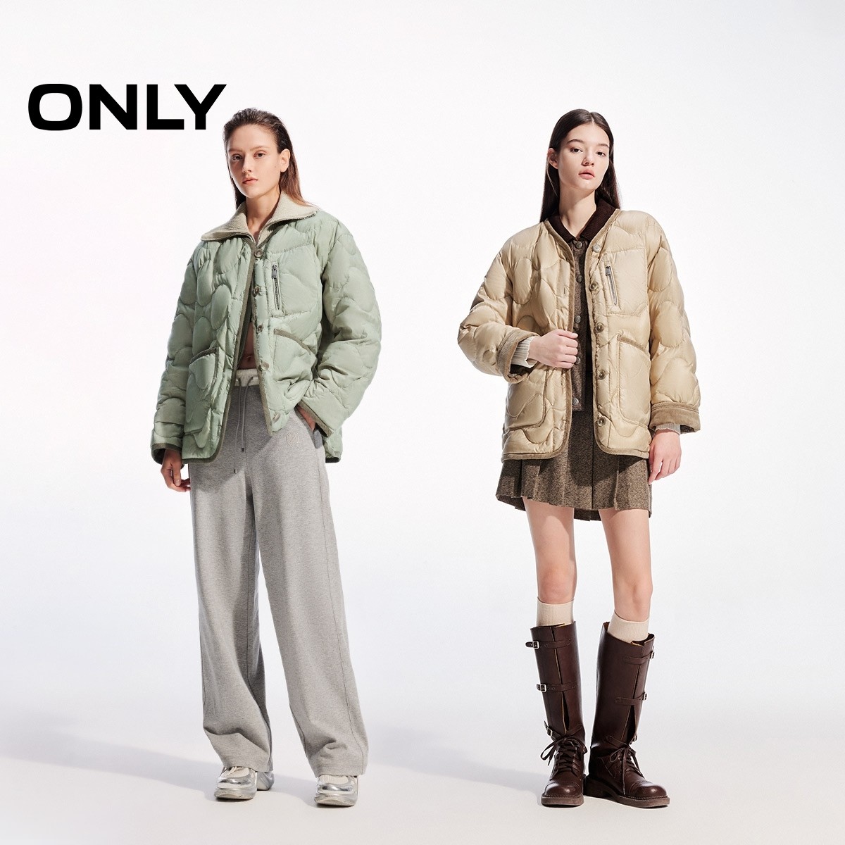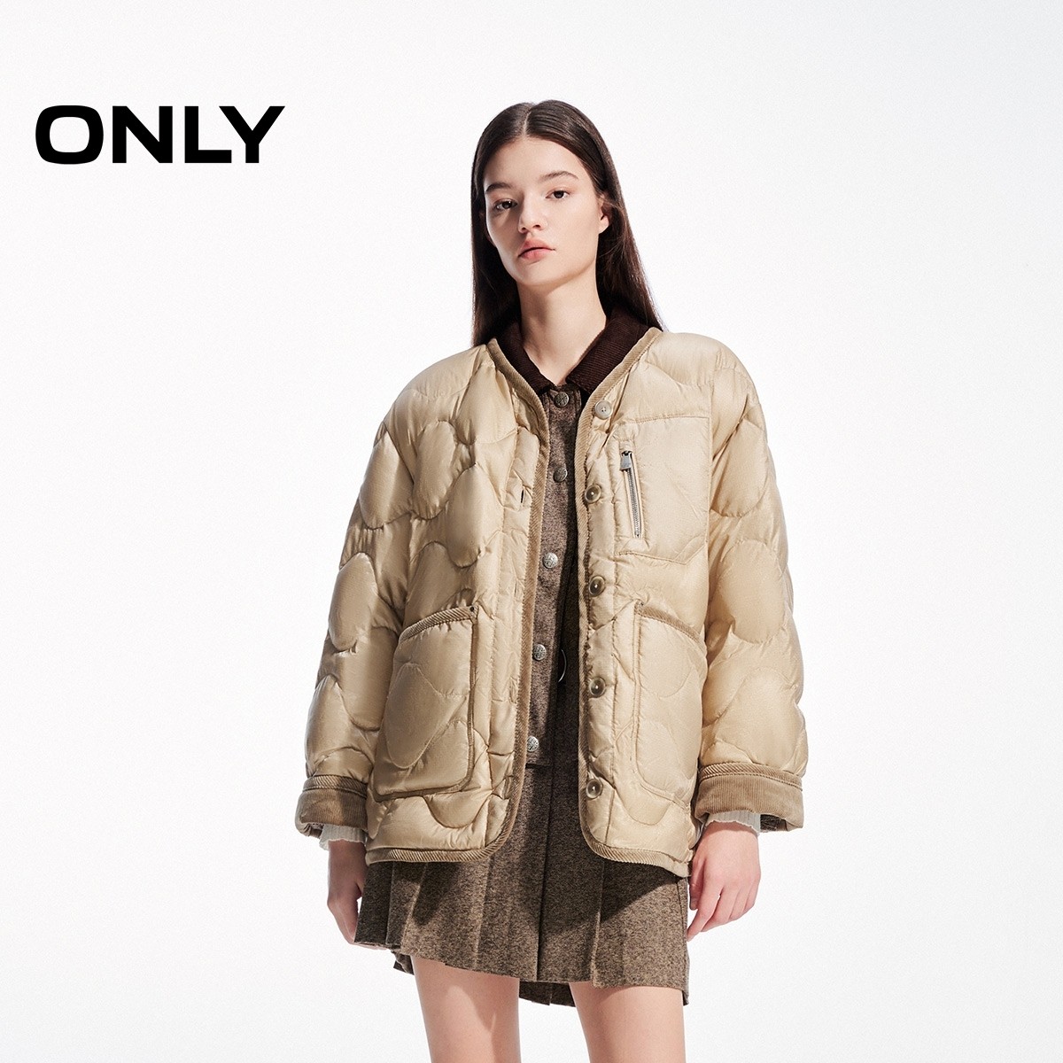 绫致ONLY2025冬季新款90白鸭绒宽松棒球领大口袋羽绒服女