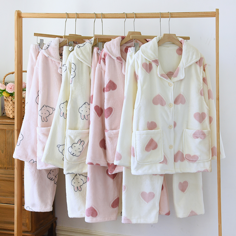 法兰绒月子服秋冬季产后11月份12孕妇睡衣哺乳产妇家居服珊瑚绒