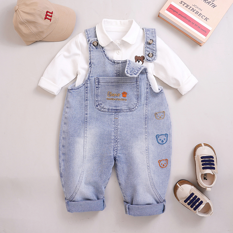 宝宝水洗牛仔背带裤婴儿春秋外出开裆裤男童女童婴幼儿童炸街裤子