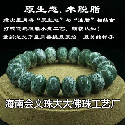 海南星月菩提子阴皮石玉料单圈大尺寸手串原生态帝皇绿青花瓷玄月