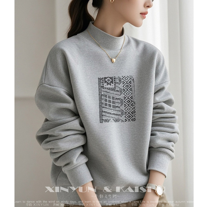 半高领卫衣女圆领春秋冬加厚加绒薄款宽松休闲无帽长袖套头上衣