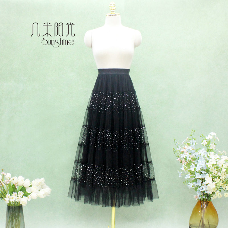 2025秋时尚亮片绣花裙闪闪半身裙蛋糕裙网纱裙垂感显瘦大摆裙长裙