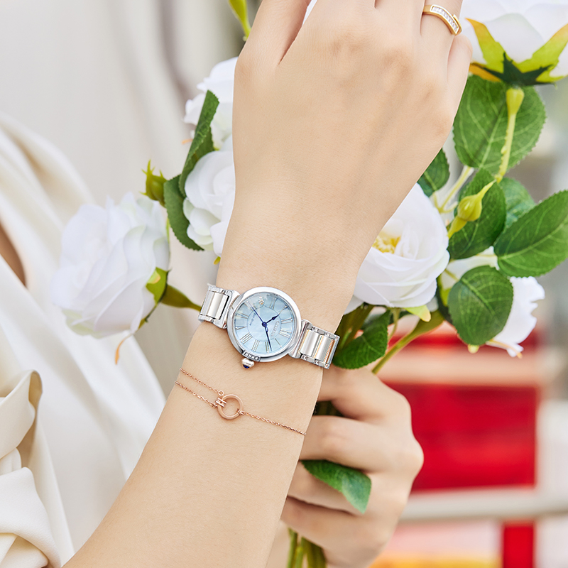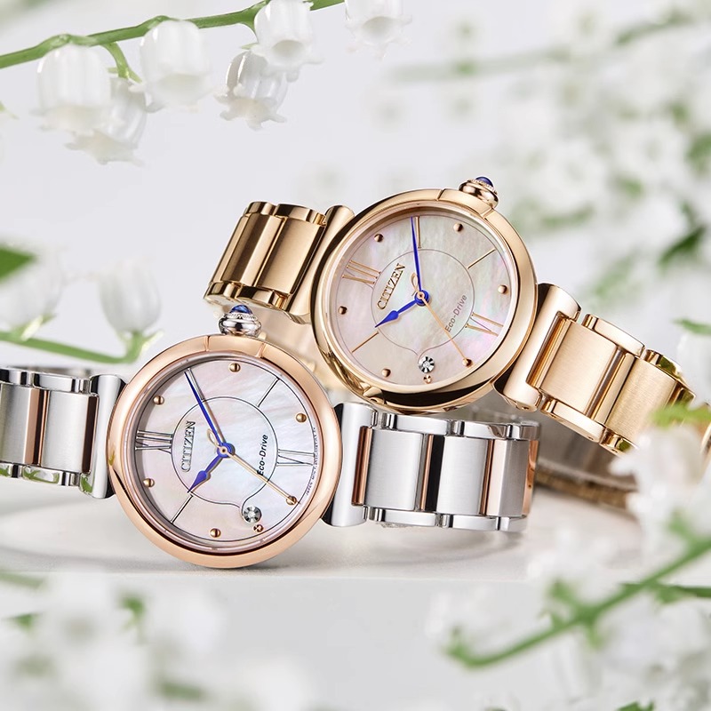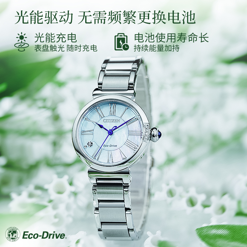 【自营】西铁城手表女小铃花贝母盘光动能手链石英钢带女表EM1060