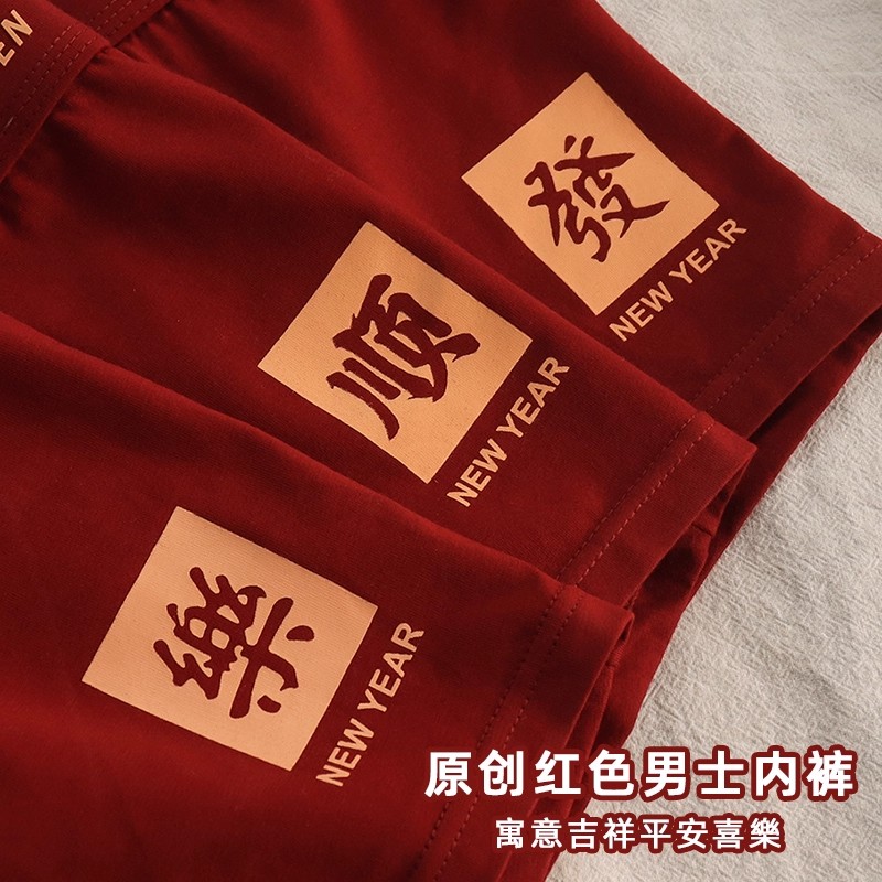 本命年蛇年红内裤男生纯棉男款四角短裤红色男士礼物秋冬款平角裤