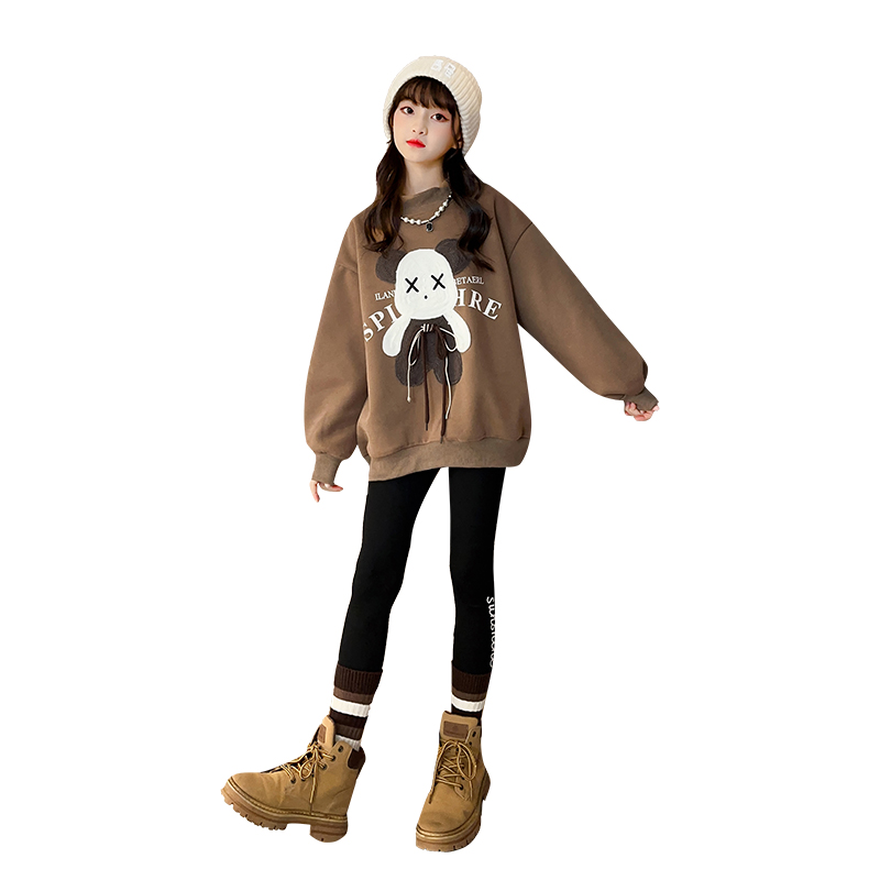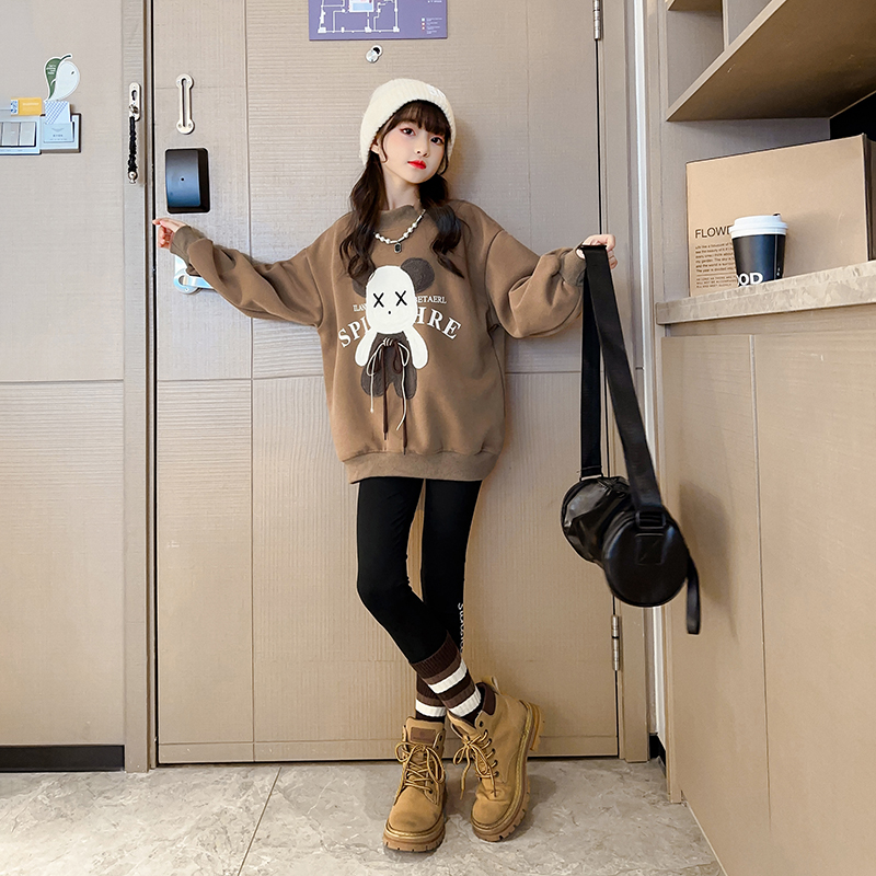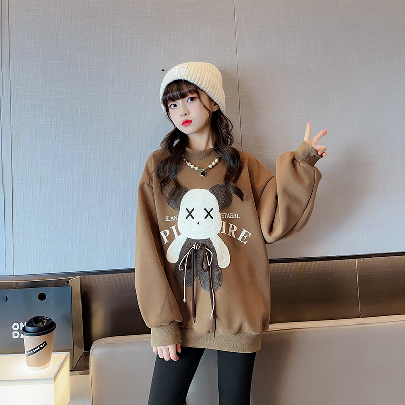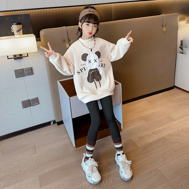 女童加绒卫衣春秋2025新款儿童春装上衣服中大童秋冬季加厚打底衫