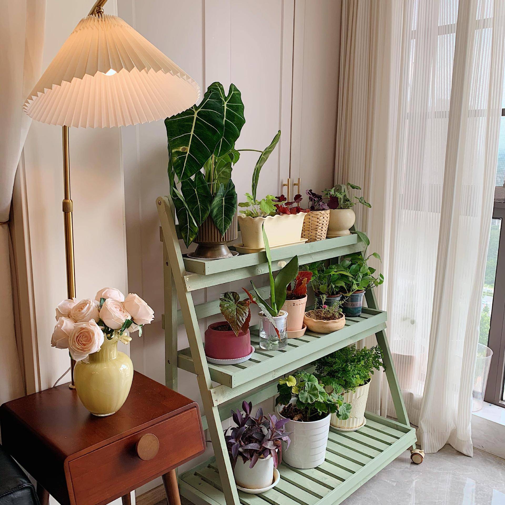 绿植置物架多肉花架子阳台多层落地式实木植物摆放架移动花架新款