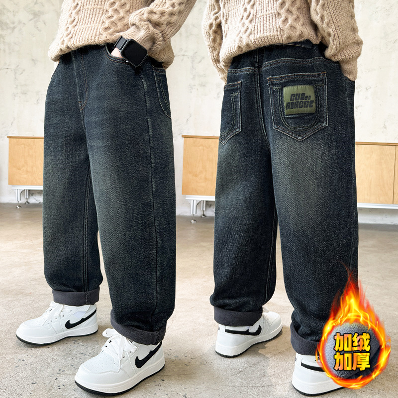 儿童牛仔裤秋冬新款男童加绒裤子