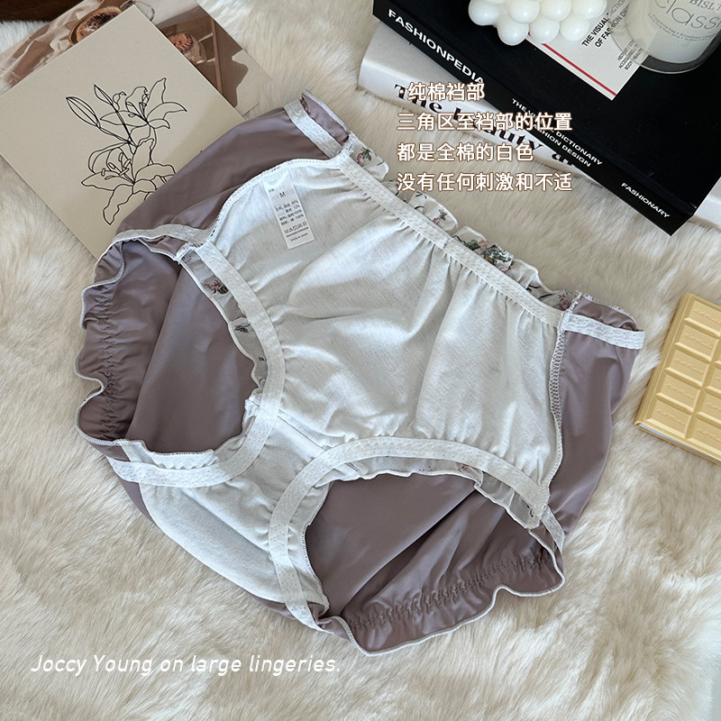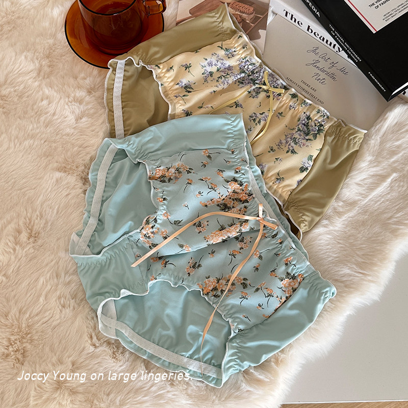 JY·古早花苞裤·内裤雪纺碎花大码中高腰蝴蝶结三角裤牛奶冰丝女