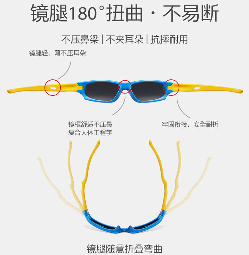 6-12岁儿童户外运动骑行太阳镜防紫外线保护男女宝宝眼睛偏光墨镜