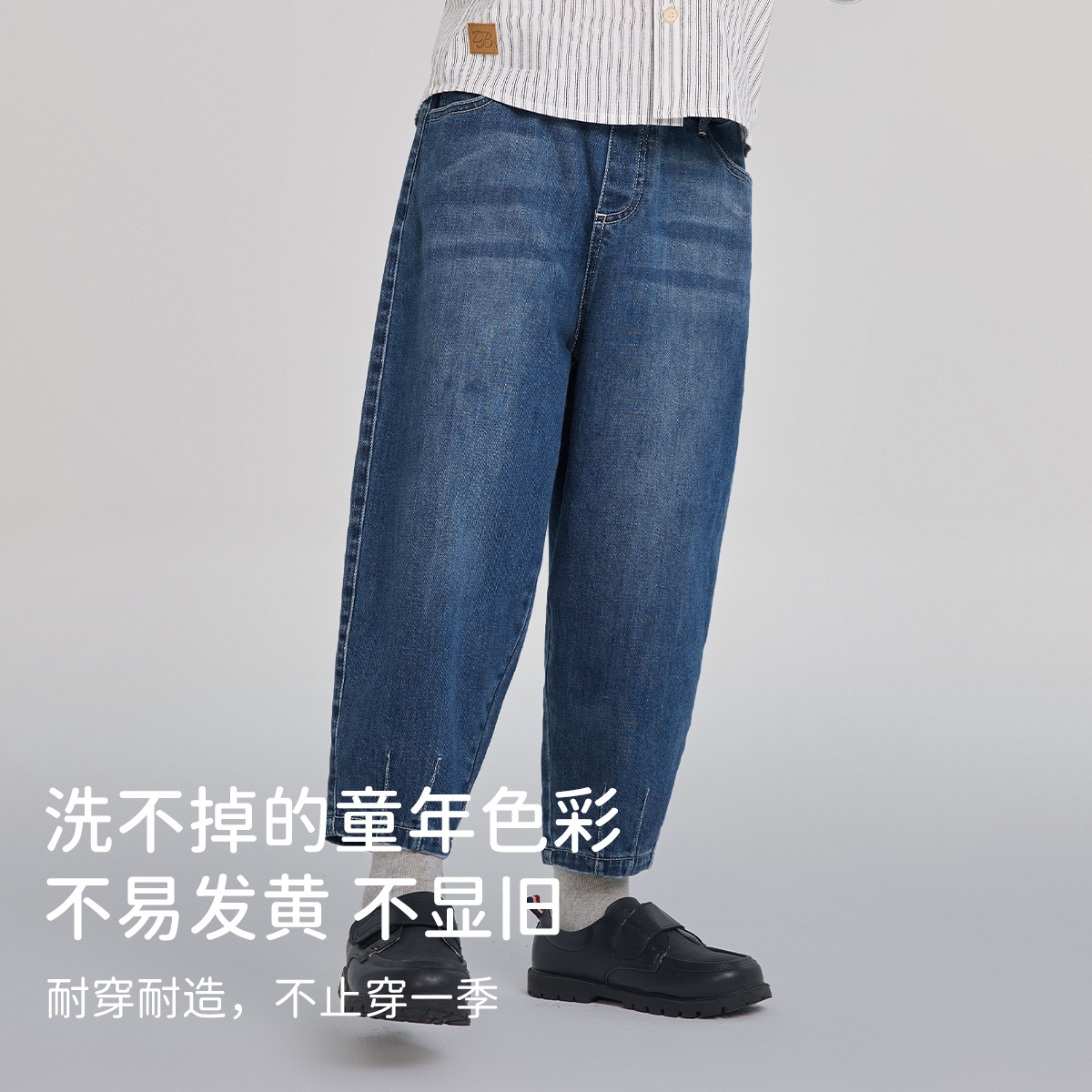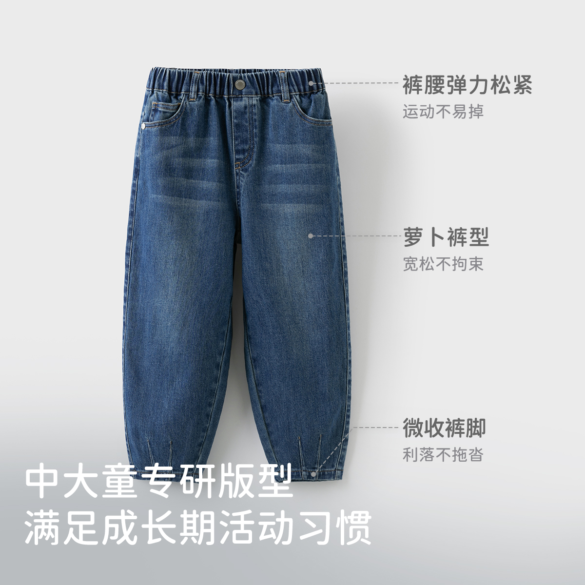 戴维贝拉男童牛仔裤儿童九分裤子男2025秋季新款男大童萝卜裤童装