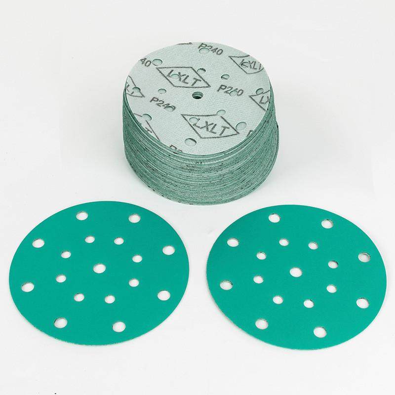 XLT绿砂6寸17孔背绒砂纸锆刚玉磨料费斯托干湿两用汽车打磨抛光