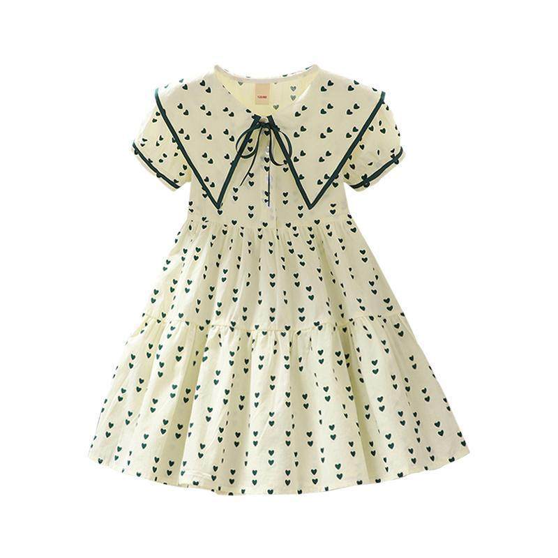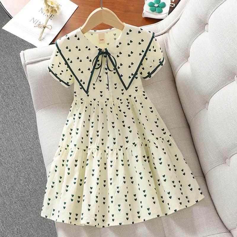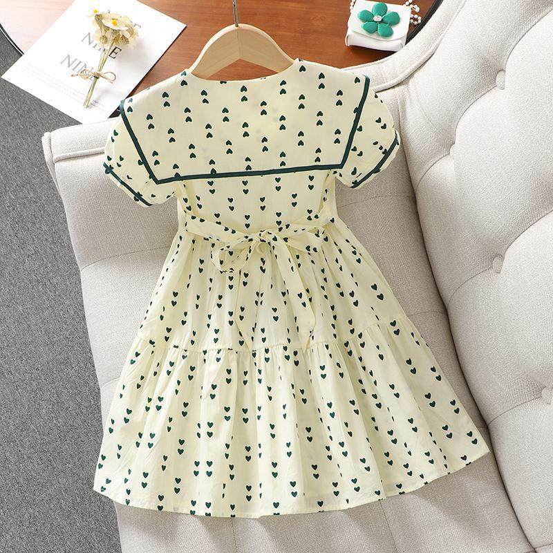 女童连衣裙夏款新款薄款爱心中大童海军领学院风清新连衣公主裙