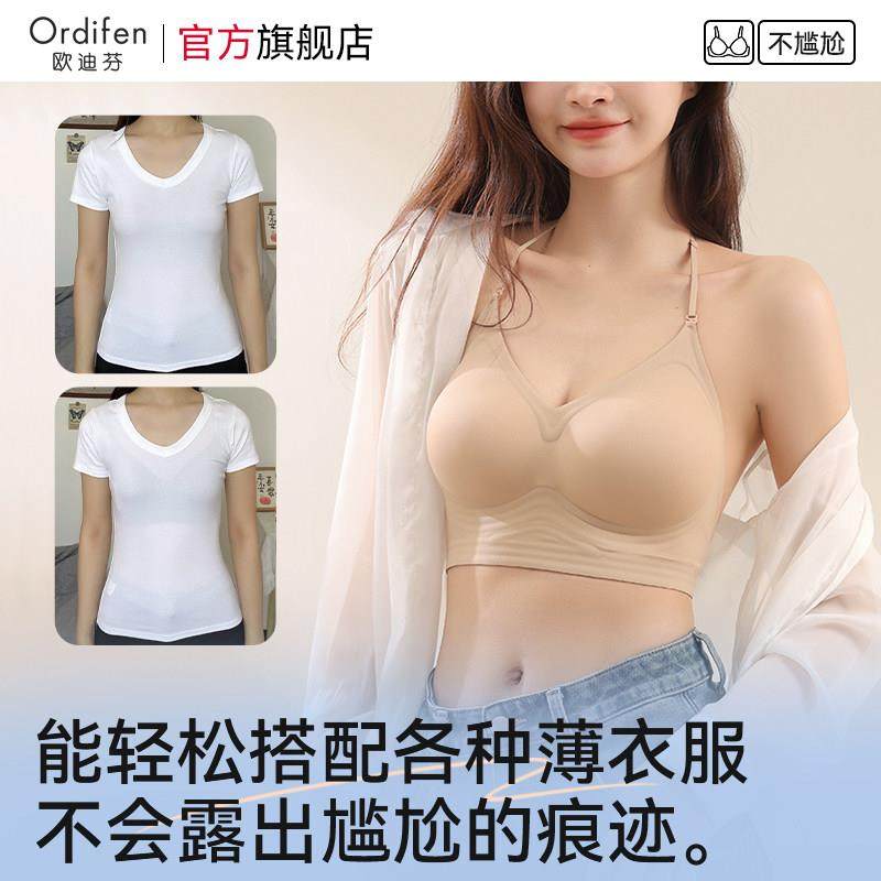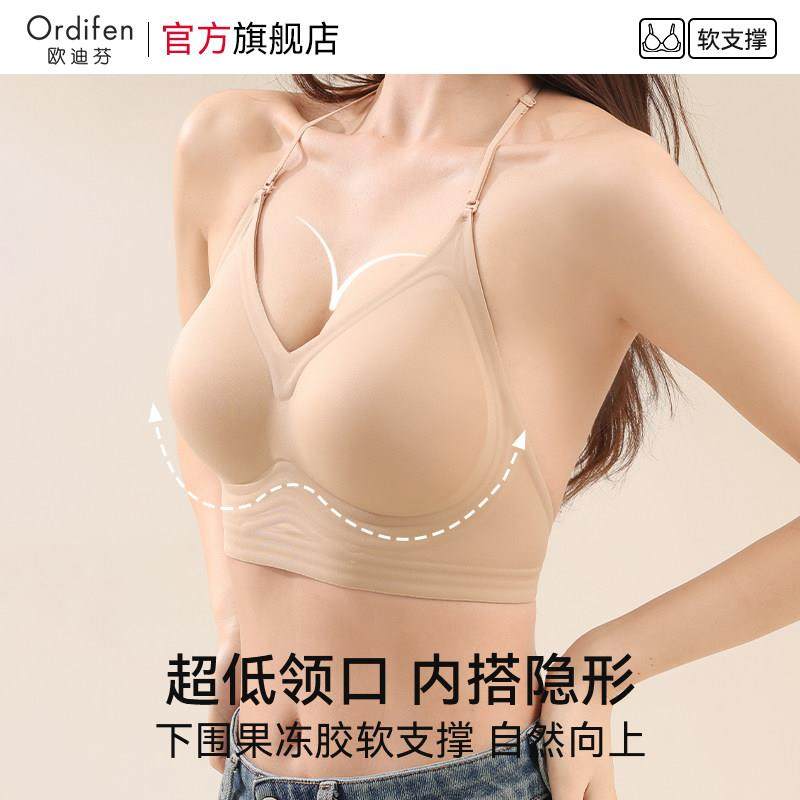 欧迪芬无痕美背内衣女粉底液隐形吊带一体2025新款露背挂颈文胸罩