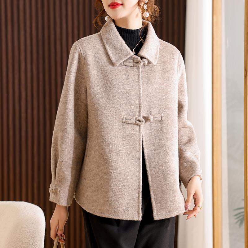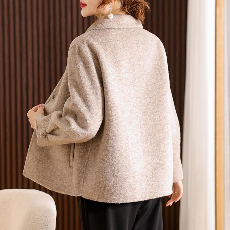 2025新款妈妈春装双面羊毛呢外套中老年女装春秋短款翻领呢子大衣