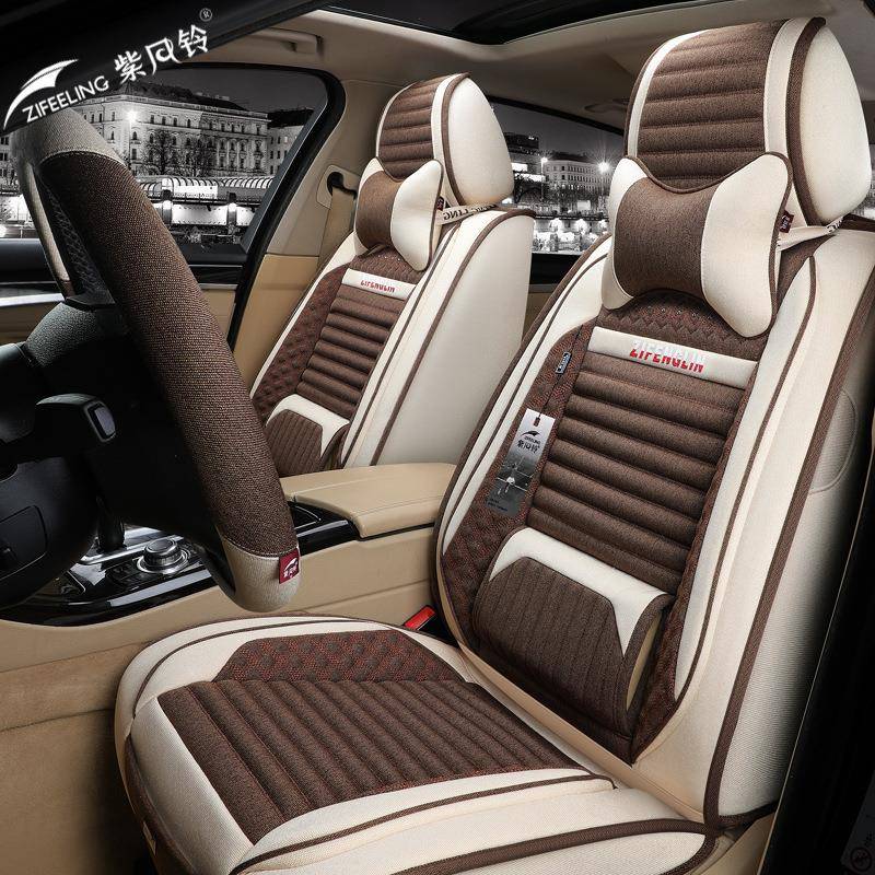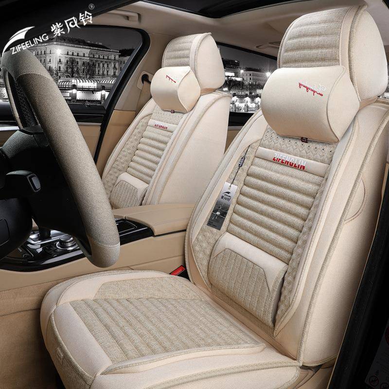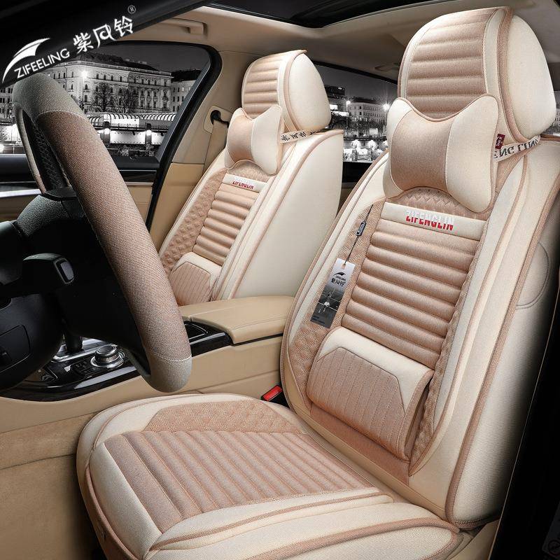 紫风铃新款全包围汽车坐垫四季通用亚麻全包五座坐套布艺座套M-01