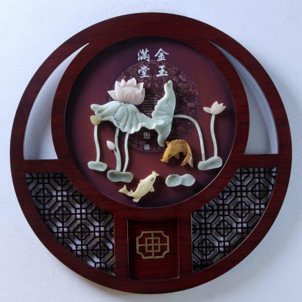 玉雕画挂件东阳木雕客厅书房玄关背景墙壁装饰中式雕刻富贵如意鱼