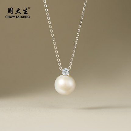 周大生戴妃珍珠吊坠项链颈链女正圆强光珍珠大尺寸素珠素链女款