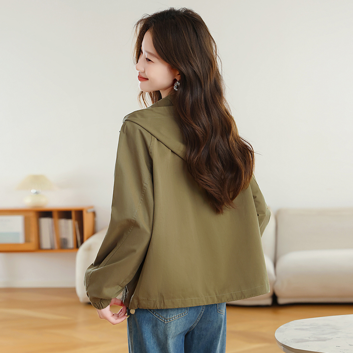 工装短款风衣外套女春秋2025初秋新款女装气质小个子休闲连帽上衣