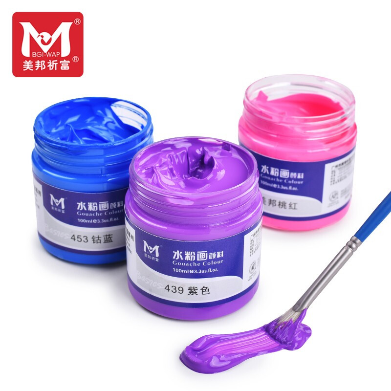 美邦祈富AP100水粉颜料100ml罐装初学者广告色无甲醛水粉画颜料