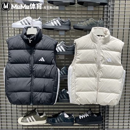 阿迪达斯男子羽绒马甲2025冬新品保暖休闲运动鸭绒无袖外套KH3990