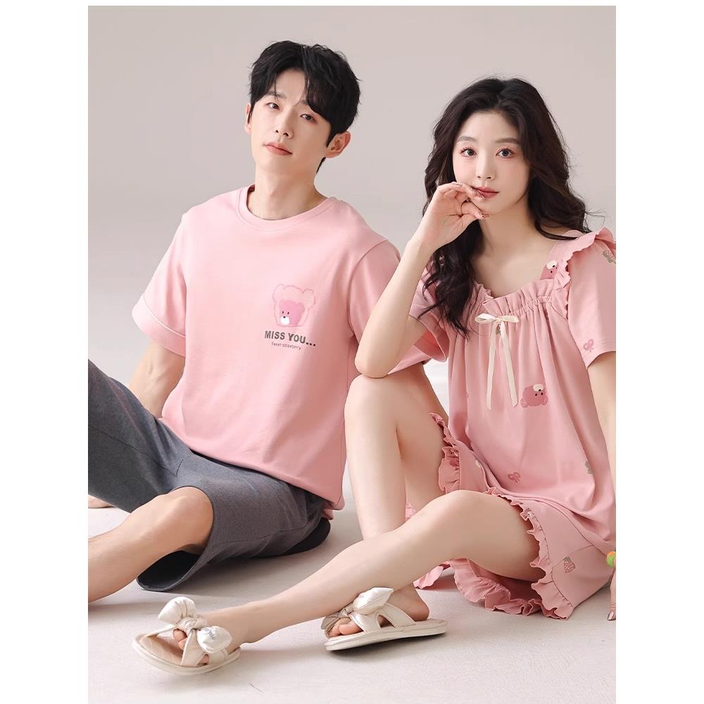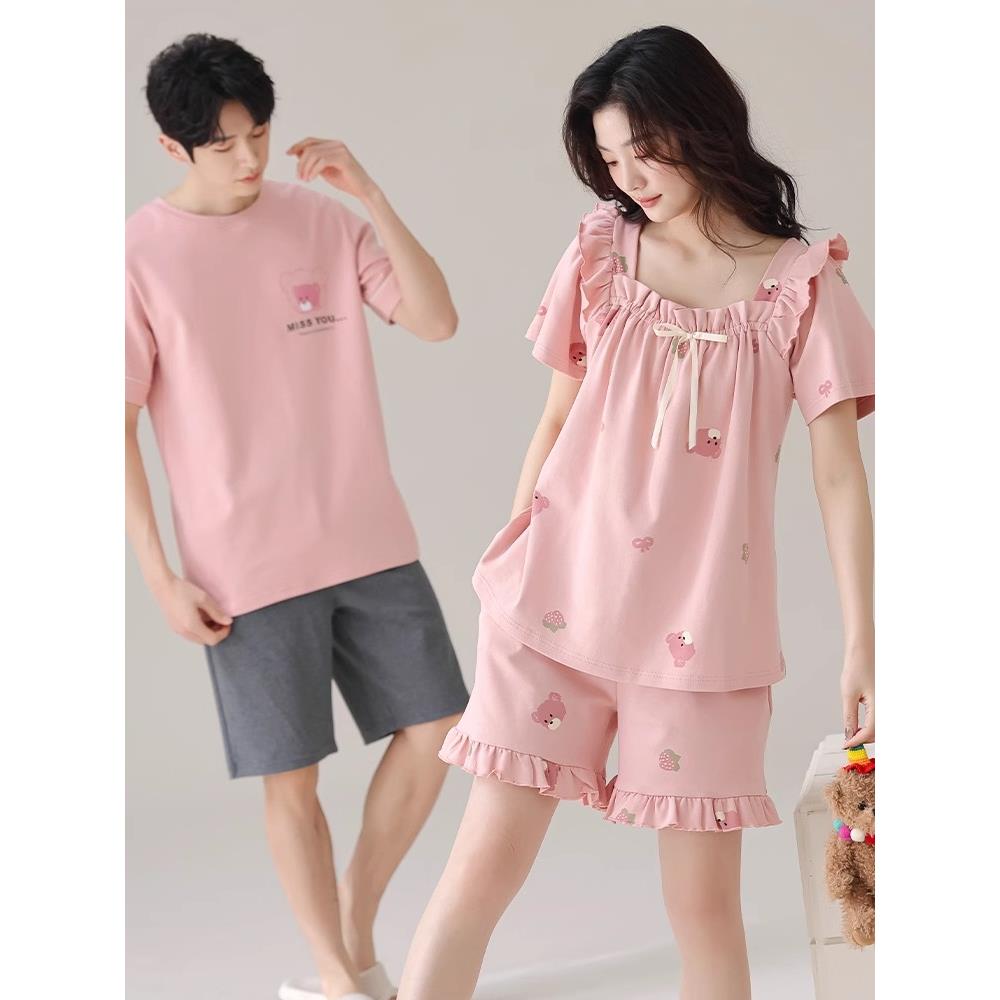 情侣睡衣夏季纯棉短袖薄款可爱卡通草莓熊2025新款一男一女家居服