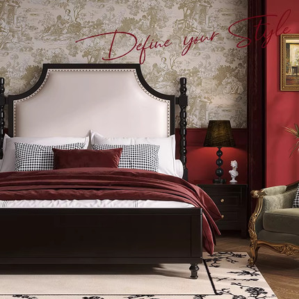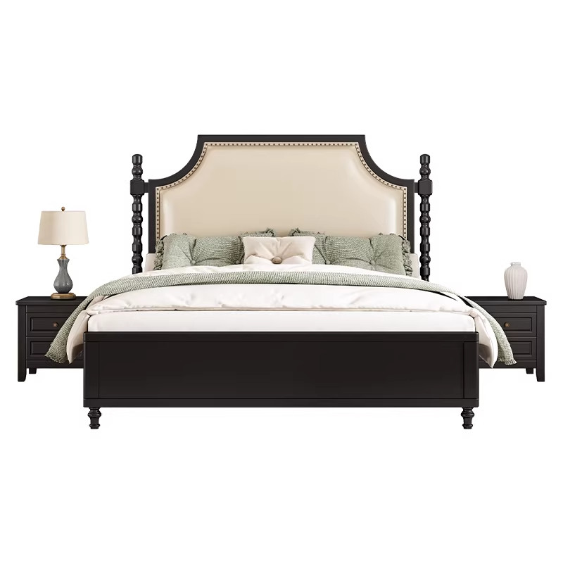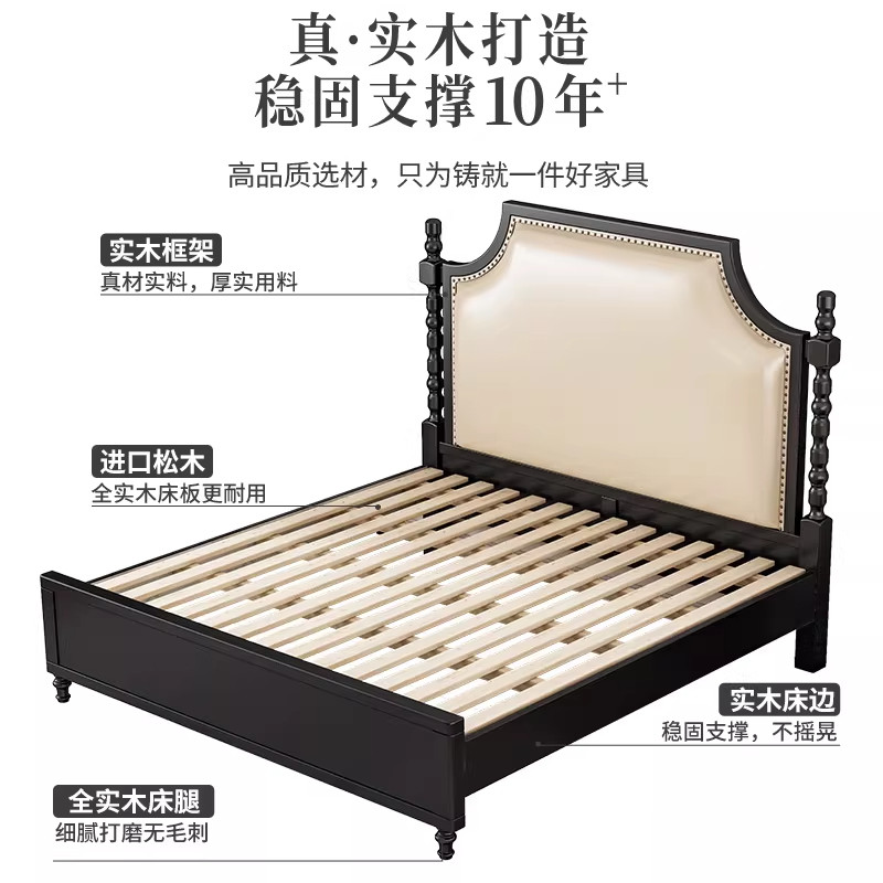 法式复古实木床中古风胡桃木主卧双人床2米1.5单人高箱储物美式床