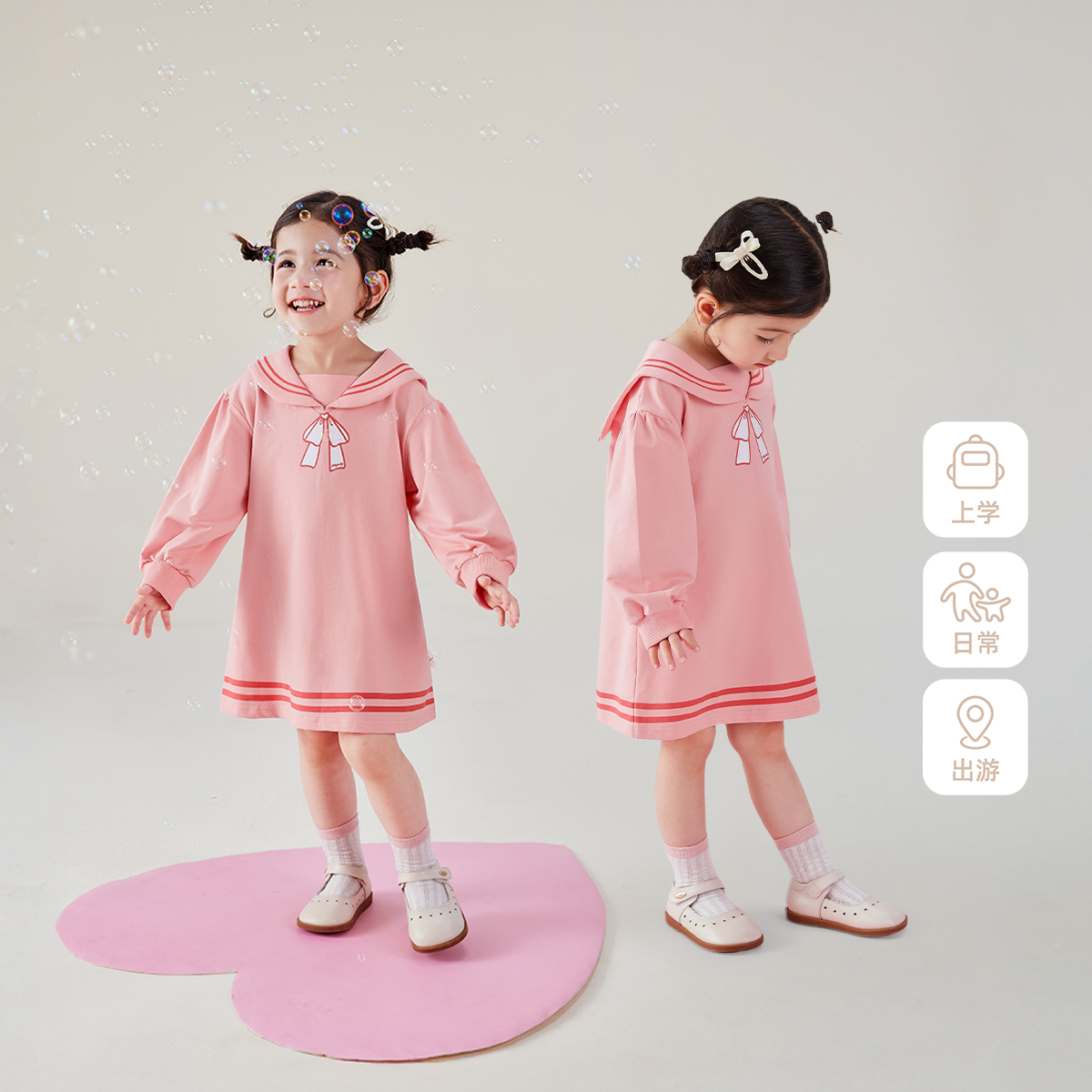 【2025秋首发】女童海军风连衣裙宝宝秋季公主裙儿童粉色裙子春秋
