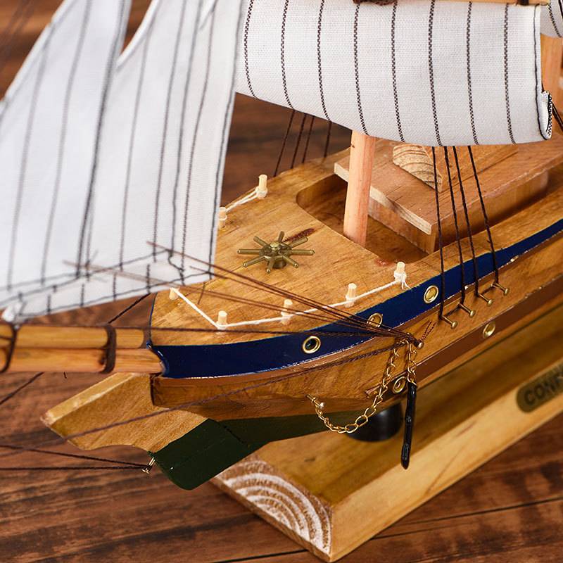 工艺帆船模型摆件书房卧室欧式风一帆风顺装饰品木质工艺品45cm