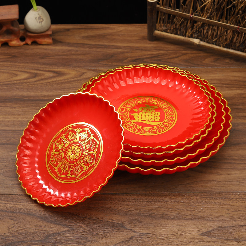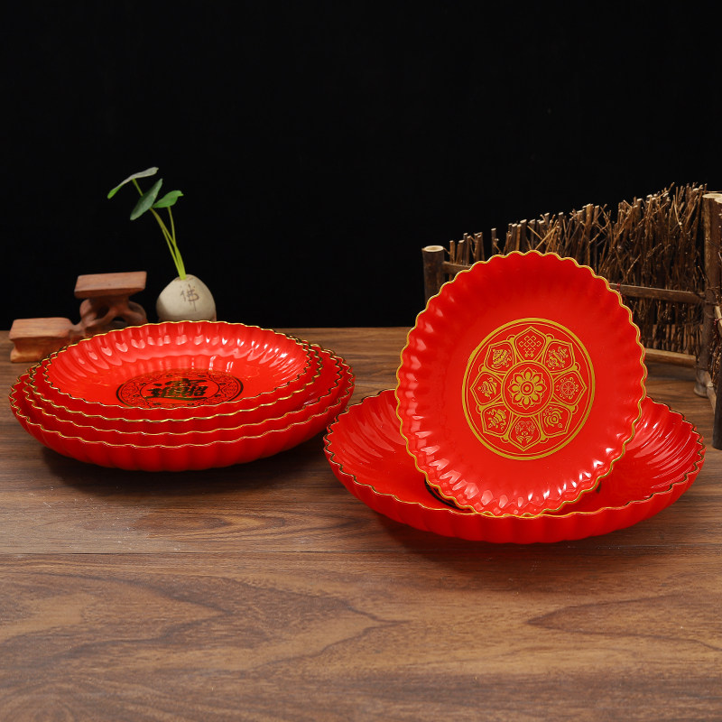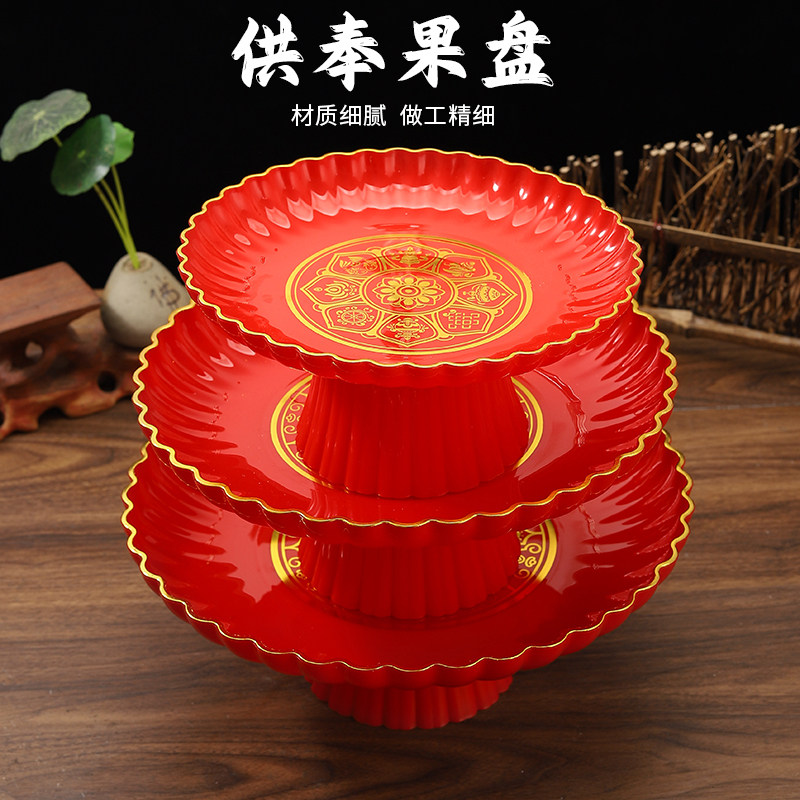 拜神供佛高脚摆盘乔迁福盘财神爷招财盘红盘供果盘加厚贡盘水果盘