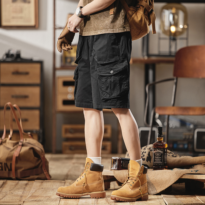 美式复古黑色工装短裤男夏季2025新款宽松大码休闲五分裤男中裤