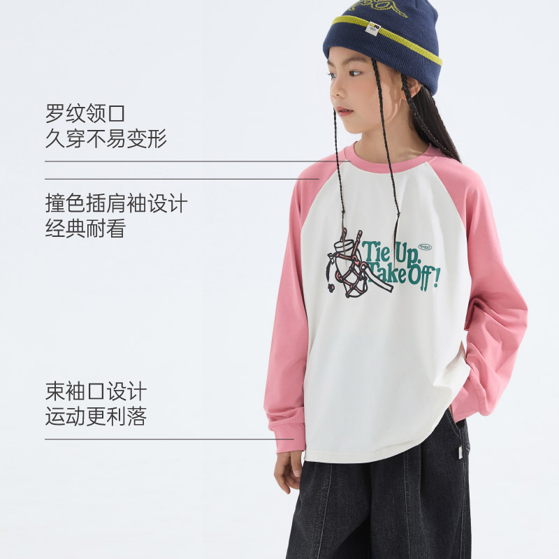 mipo秋季儿童t恤长袖速干女男童户外运动徒步透气插肩袖印花上衣