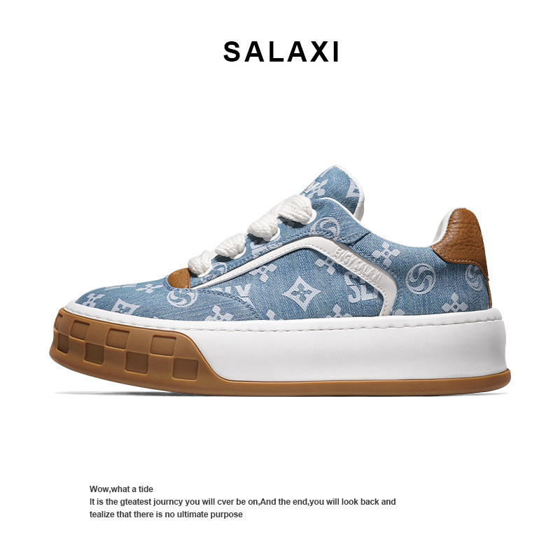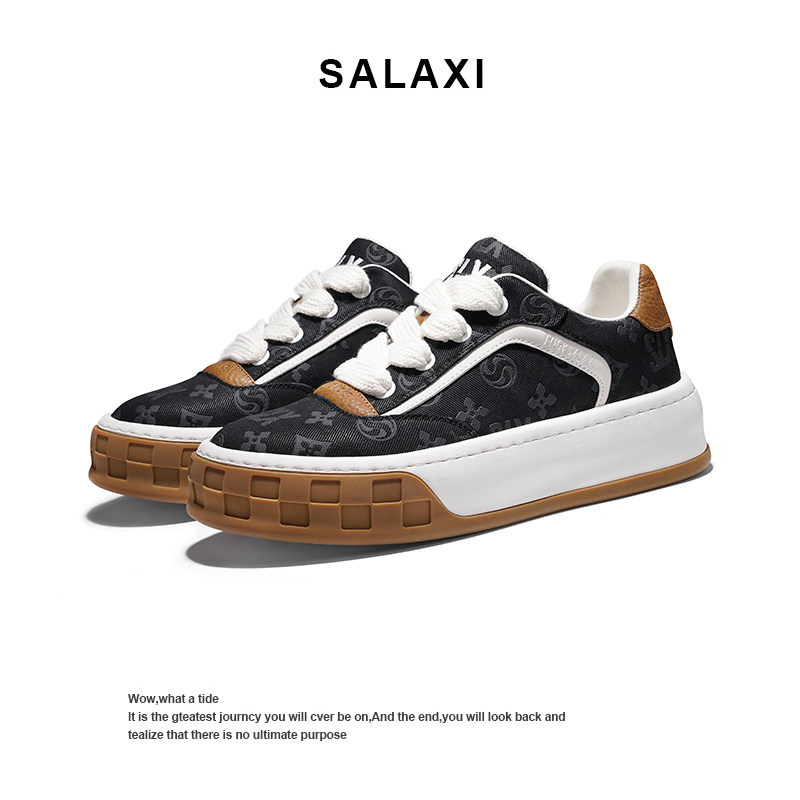 Salaxi/莎莱茜复古印花厚底板鞋百搭时尚潮流增高低帮休闲男鞋