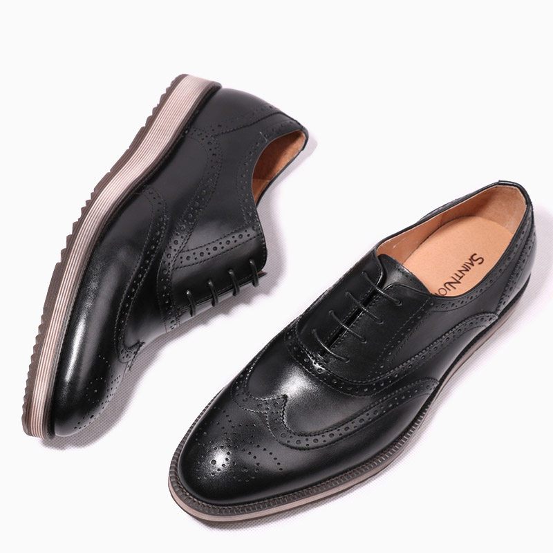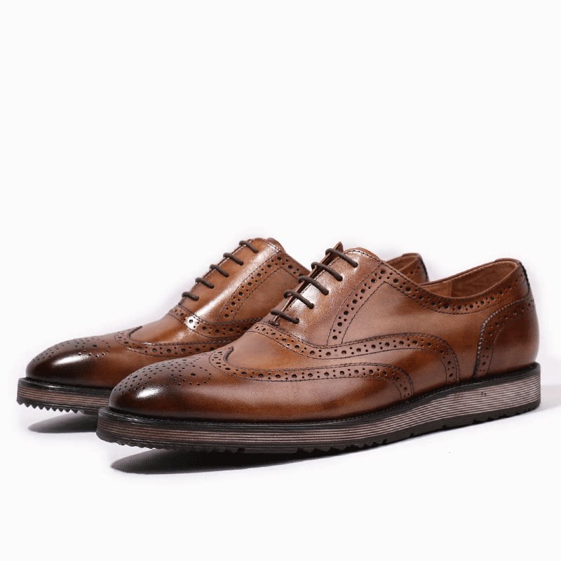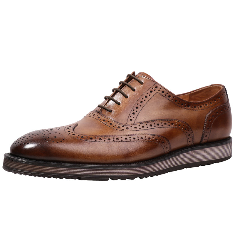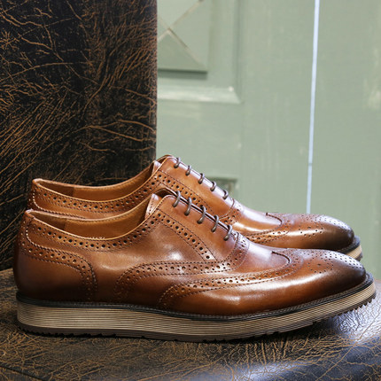 优100潮男士韩版厚底布洛克牛津鞋英伦雕花棕色商务休闲手工皮鞋