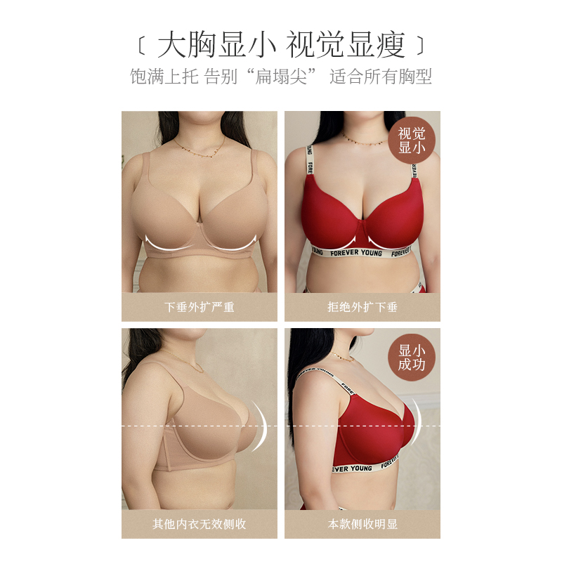 EMMAROSE红色大码内衣女本命年套装大胸显小收副乳防下垂聚拢文胸