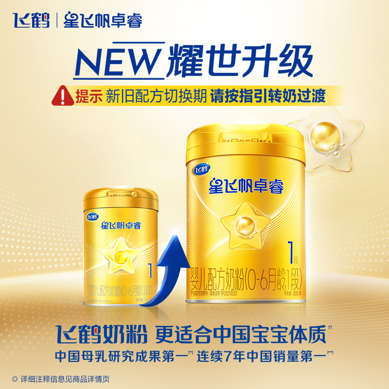 0元试喝|飞鹤星飞帆卓睿一段1段HMO婴儿新生儿奶粉300g*1中听官方