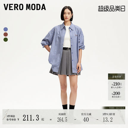 Vero Moda衬衫女2025夏季格纹刺绣印花淡盐系衬衫通勤325105026