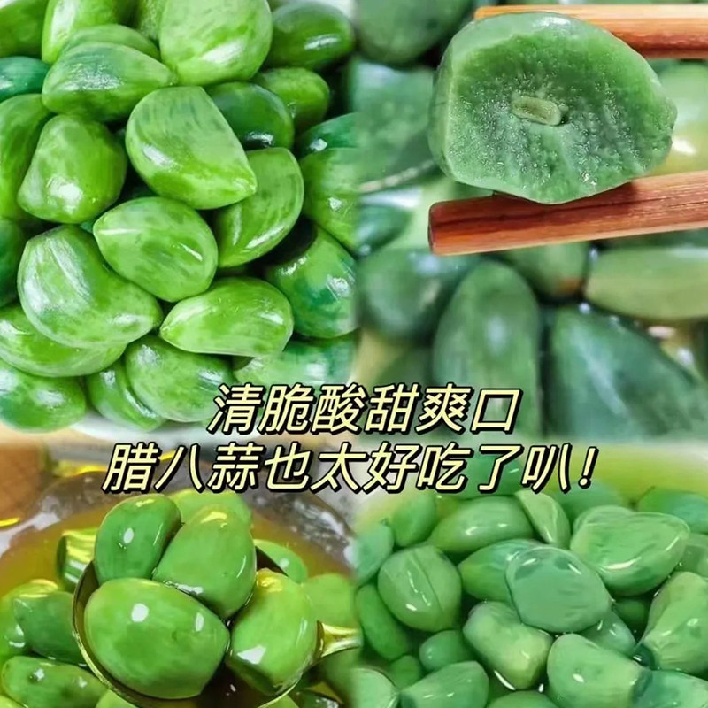 翡翠腊八蒜酸脆解腻不辛辣腌制下饭泡菜咸菜糖蒜大蒜头腌制绿蒜头