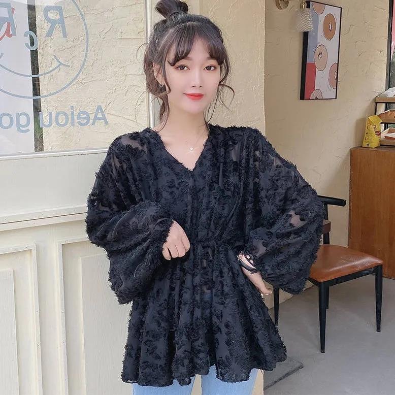 秋冬打底内搭2025装新款大码雪纺衬衫女v领宽松遮肚子显瘦1007k
