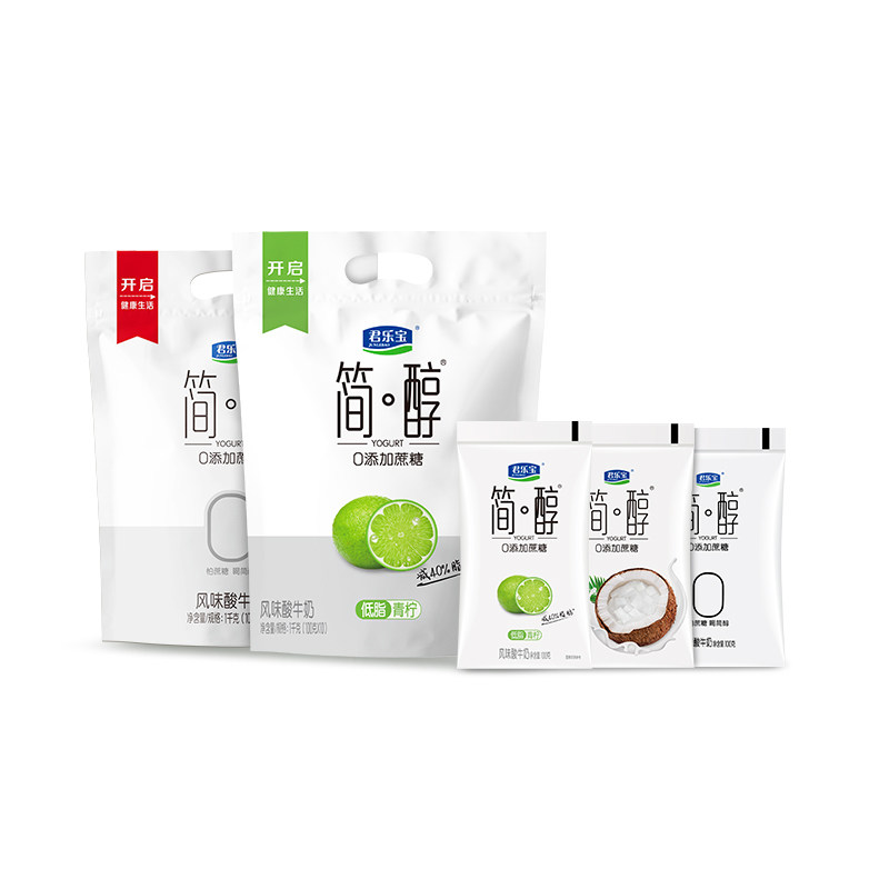 君乐宝简醇原味青柠味0添加蔗糖酸奶100g*10袋袋装风味酸牛奶